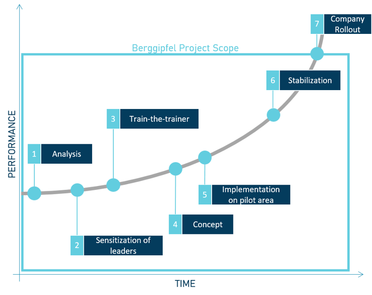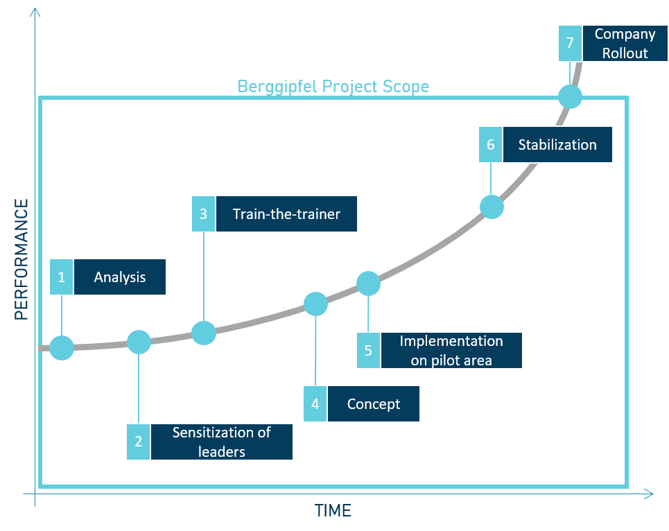 Desarrollo de líderes dentro de la organización, capaces de implementar un sistema de trabajo a los diferentes niveles de la organización, para encontrar la conexión de los procesos basada en una cultura de confianza y transparencia.